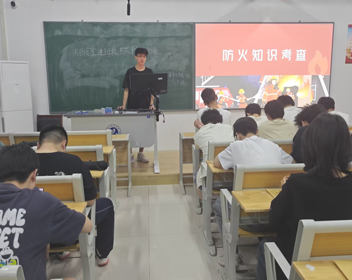 在消防知识讲解环节,各班负责人对各类消防器材的使用方法进行了重点介绍。从灭火器的适用范围、操作步骤,到消火栓的连接与喷水要领,都一一细致说明,让同学们对消防器材有了更清晰的认知。同时,他们还传授了在火灾发生时如何正确报警、组织疏散以及进行初期火灾扑救等实用技能。