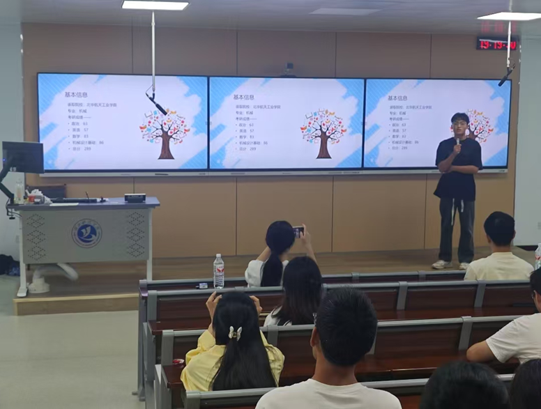 罗欣宇则分享“时间管理与心态调整”,建议大一大二注重学科学习与综合实践,大三起合理分配考研与毕业任务,参考B站博主“学长小谭”制定全年计划,强调“孤独是成长常态”,鼓励学弟学妹们以个人理想与家庭期望为动力坚持备考。