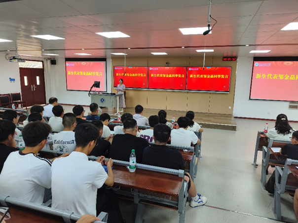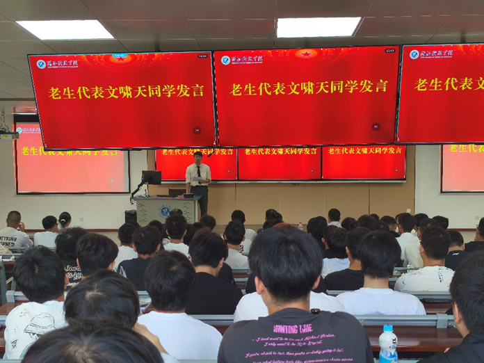 随后,老生代表文啸天同学以学长的身份与新生交流。他分享了自己在大学的学习与成长故事,鼓励新生们既要脚踏实地学好专业知识,也要勇于尝试新事物,积极融入集体,在william威廉英国官网这个大家庭中收获知识与友谊,度过充实而有意义的大学时光。