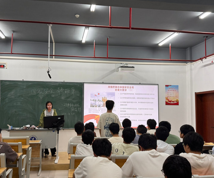 班会中,团支书通过播放国家安全相关纪录片、解读权威部门理论文章等形式,为同学们呈献了国家安全成就教育的丰富内容。同学们围绕“全民国家安全教育走深走实十周年”展开热烈讨论,结合党的二十大以来不同领域青年维护国家安全的事迹,深刻理解自身肩负的责任。